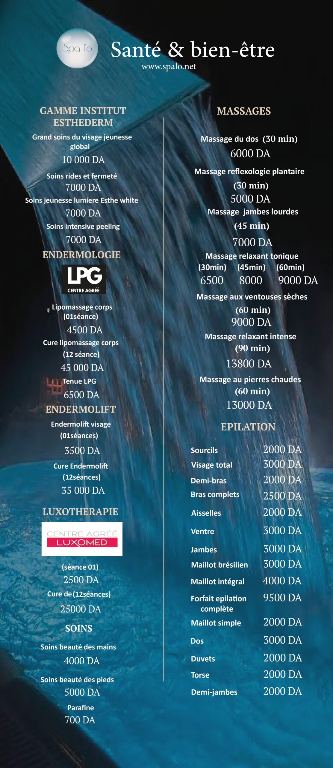 Lotissement Djaffar Slimane – Bouchaoui – Chéraga | Phone : 0552 55 04 26 | Email : contact@spalo.net. © Copyright © 2025 SPA’LO. Tous droits réservés.